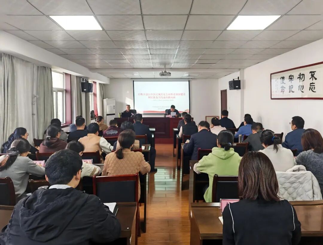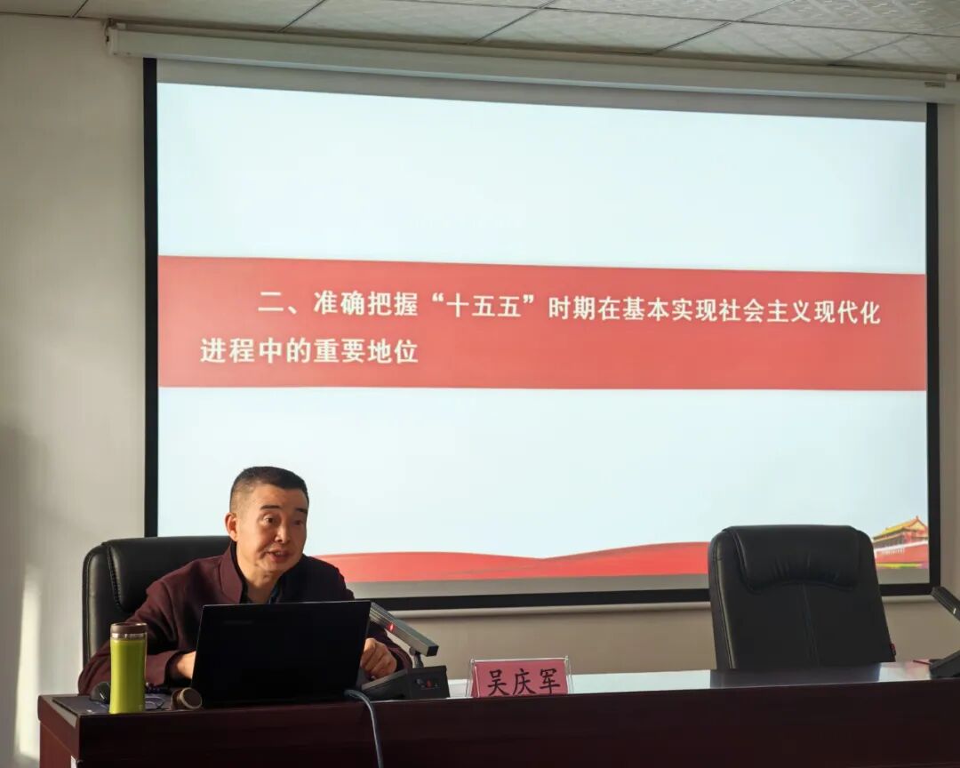 11月27日,西安办事处邀请自治区宣讲团成员、自治区社科院原一级巡视员吴庆军,为全体干部职工作党的二十届四中全会精神专题宣讲。 吴庆军同志围绕“不断开创以中国式现代化全面推进强国建设和民族复兴伟业的新局面”主题,从深刻领会全会的重大意义特别是习近平总书记重要讲话精神,准确把握“十五五”时期在基本实现社会主义现代化进程中的重要地位,全面理解“十五五”时期经济社会发展的指导方针、主要目标、战略任务和重大举措等四个方面,通过生动案例和鲜活故事,对全会精神作了系统宣讲和深入阐释。 聆听宣讲后,与会人员一致表示,将深刻领悟“两个确立”的决定性意义,坚决做到“两个维护”,切实把思想和行动统一到全会精神上来,进一步深入学习领会全会精神,把学习成果转化为履职尽责的具体行动,为服务西藏长治久安和高质量发展贡献应有力量。