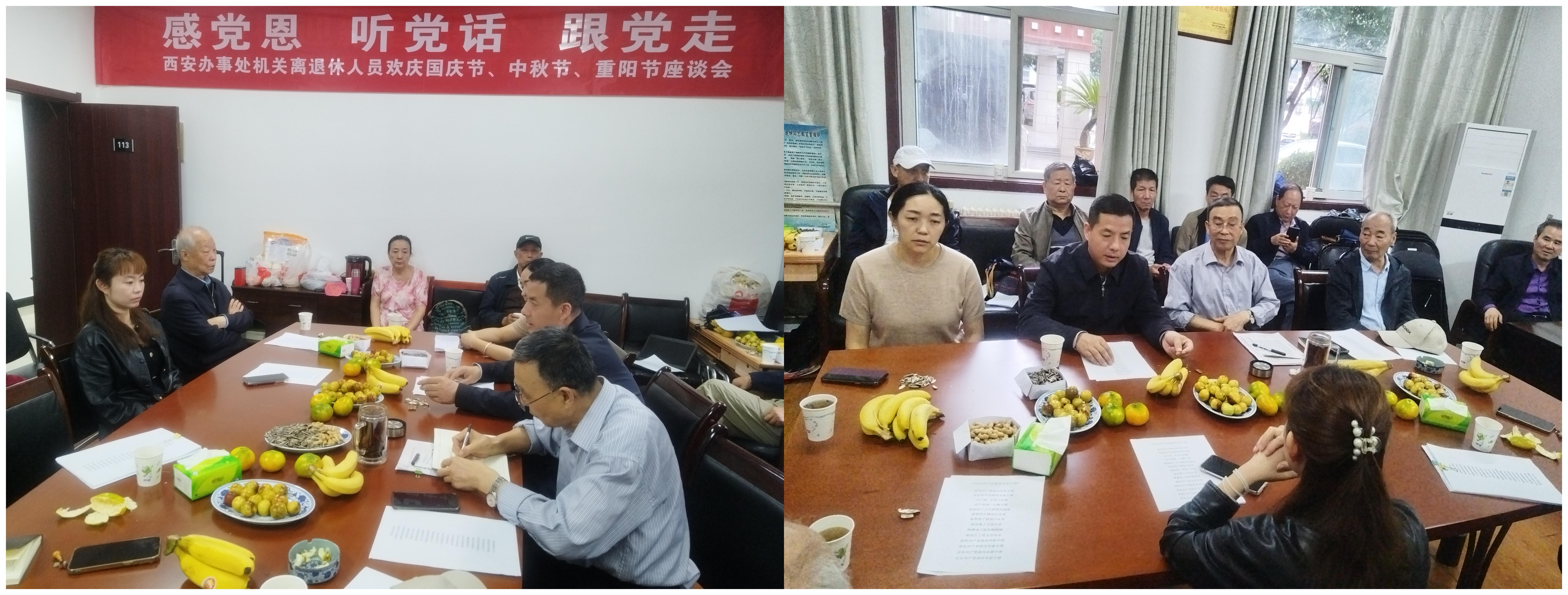 9月28日上午,西安办事处机关离退休人员组织召开“感党恩、听党话、跟党走”欢庆国庆节、中秋节、重阳节座谈会。办事处党组成员、副主任王大春同志出席,离退休党支部书记刘纪才同志主持。 会议在合唱“没有共产党就没有新中国”“歌唱祖国”中拉开帷幕,办事处党组成员、副主任王大春代表办事处党组,向老同志们致以节日的祝福。他指出,今年是自治区成立六十周年,老同志们为西藏建设贡献了青春,希望大家“离岗不离队”,主动发挥经验优势,持续发光发热,一如既往关心支持西藏发展。同时,就更好发挥离退休党支部作用提出几点希望: 一是建强支部战斗堡垒。希望离退休党支部认真落实《中国共产党支部工作条例(试行)》,结合身体与生活特点,采用“线上+线下”“集中+送学”等模式开展“三会一课”、组织生活会,确保组织生活规范暖心。 二是深化政治理论学习。结合老党员学习习惯,以“易懂好记”为原则,通过政策手册、专题视频、专家解读等形式,学习党中央最新政策、自治区党委工作要求,力争做到“离岗不离党、退休不褪色”。 三是弘扬传承家国情怀。希望老党员发挥政治、经验、威望优势,依托微信群等平台,通过“讲党史、话发展”宣传党中央政策及西藏发展成就;与年轻党员结对,为他们讲革命故事,传递爱党爱国情怀,以“银发智慧”贡献夕阳余热。 会上,老同志们紧扣“感党恩、听党话、跟党走”主题,敞开心扉分享心声。90岁高龄的藏族退休职工索娜动情说道:“我是日喀则人,每次和老家亲戚视频,都能看到家乡翻天覆地的变化,好多地方都认不出来了!这一切都是党的好政策带来的,我总跟子孙们说,一定要牢记党的恩情,永远跟着党走。”原办事处副主任郭务田也深有感触地表示:“党中央一直高度重视西藏工作,总书记还亲自出席西藏自治区成立六十周年庆祝大会,雪域高原这些年的发展变化,充分证明了党的治藏方略完全正确。办事处党组特别关心老同志,无论是生病时的探望,还是节日里的慰问,都特别暖心。我们会一如既往支持办事处工作,继续发挥余热。”不少老同志表示,几位同志的发言既是他们的心声,也表达了在座党员对党和国家的深情厚意,对办事处领导的关心重视、厚爱表示衷心的感谢,比如对机关离退休干部活动室、阅览室的粉刷焕然一新,为老同志开展活动提供了良好的条件,他们将继续发挥余热,助力西藏长治久安和高质量发展。 座谈会后,离退休支部随即组织了有利于老同志身心健康的文化娱乐比赛活动。离退休支部支委看望了偏瘫卧床及生活不能自理的老同志,把组织的关心关怀送到老同志家中。